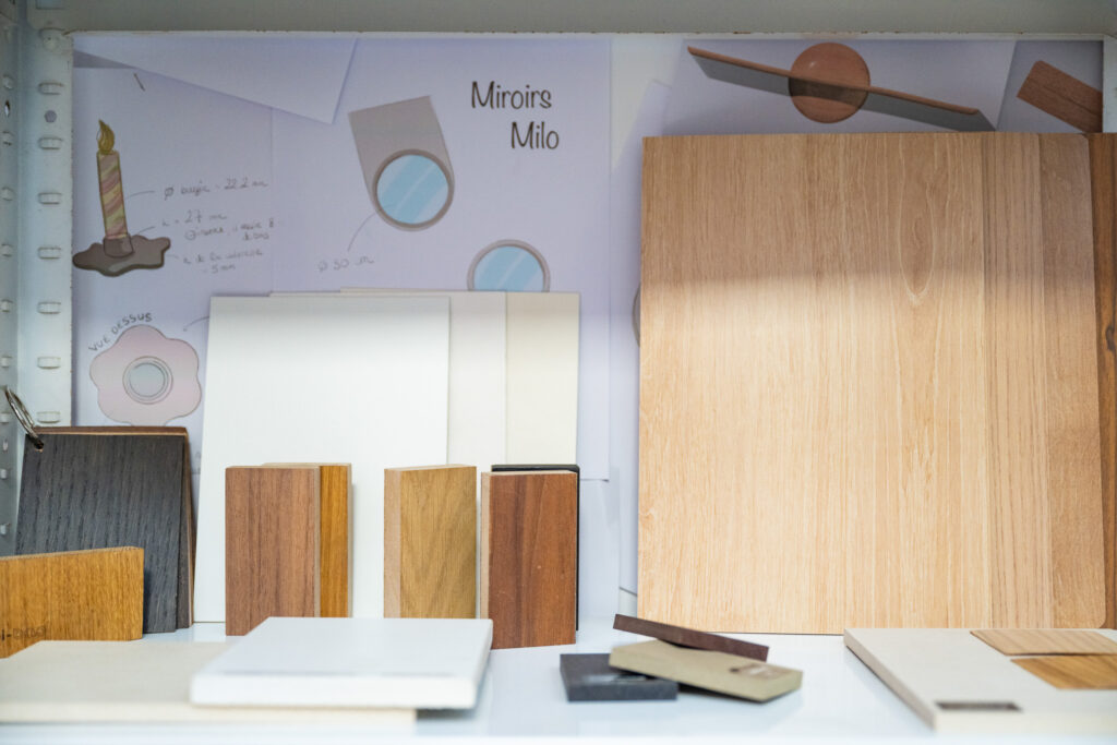 Le bois est coupé, poncé, rainuré, teinté et assemblé consciencieusement dans leur atelier à taille humaine. Il en ressort, en petites séries, les étagères Nina et Ava, la planche à découper Lise, le plateau à bijoux Iris et d’autres créations comme Luna, Loïs ou Milo… à découvrir sur leur boutique en ligne.