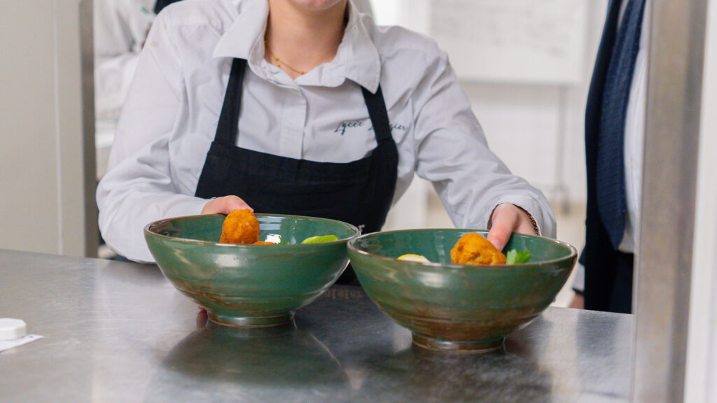 Tabliers noués, les jeunes s’affairent autour des plans de travail. Ensemble, ils émincent, goûtent, rectifient. Les casseroles frémissent, les odeurs se mêlent – fumet de poisson, zeste de citron, caramel blond.