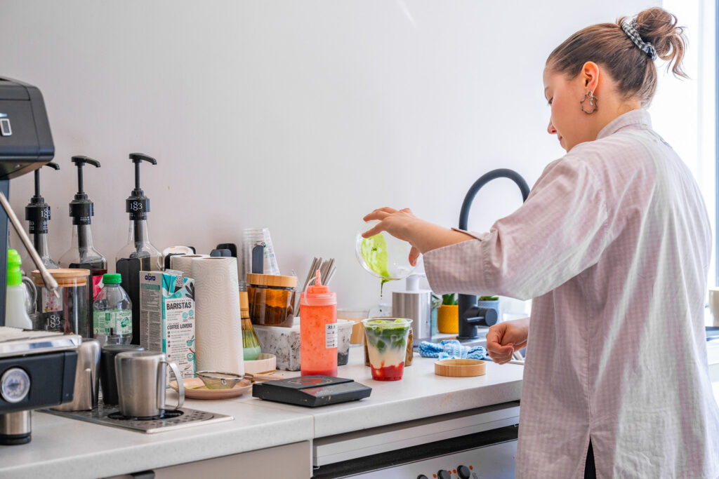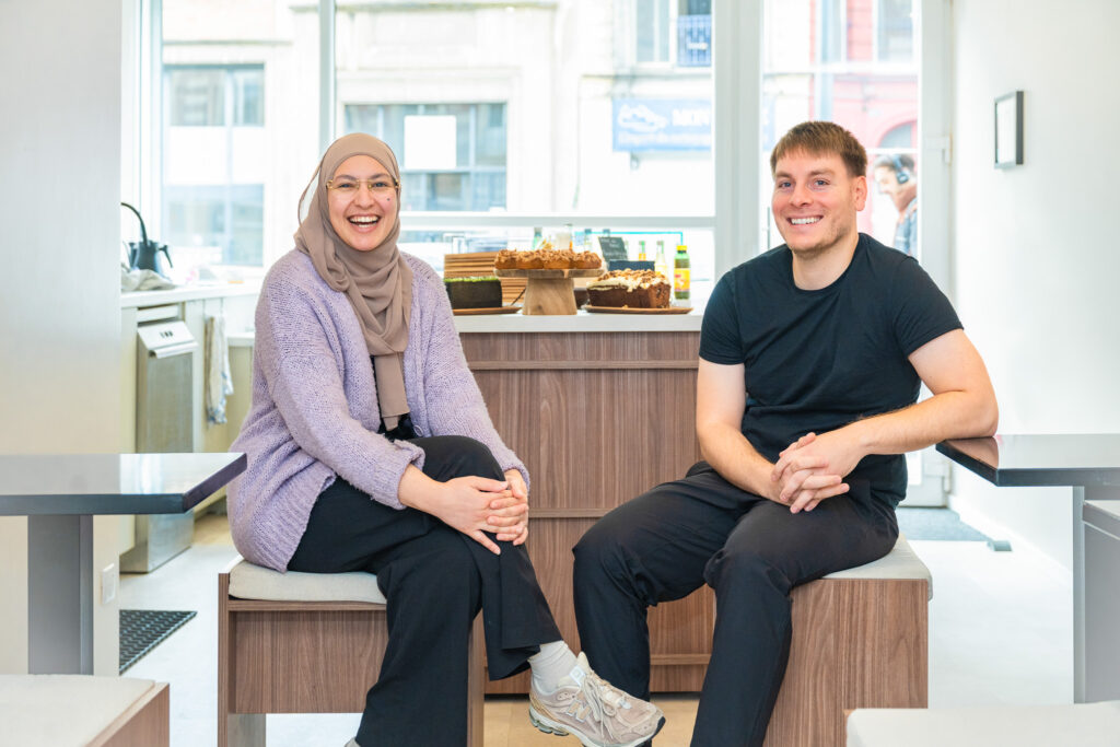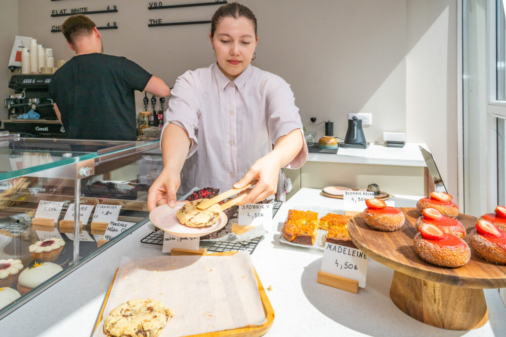 Derrière le comptoir, il y a Soumeya et Pierre. Elle, Roubaisienne, ancienne animatrice reconvertie en pâtissière autodidacte et diplômée d’un CAP, passionnée de textures et d’associations qui claquent. Lui, Villeneuvois, pro du service et pilier du lieu, toujours là pour conseiller la bonne boisson avec le bon gâteau. En couple à la vie comme au travail, ils ont imaginé ce café comme une extension de leur duo : éthique, soigné et résolument ouvert.
